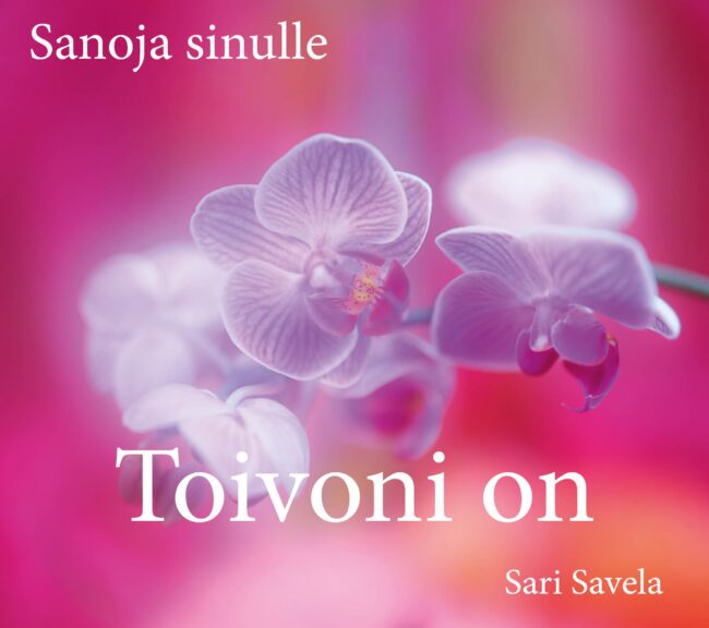 Sanoja sinulle toivosta, turvasta ja täyttymyksestä. Sanoja, jotka rikastuttavat arkea ja juhlaa. Kirjan huolella valitut sanat, säkeet ja sitaatit ovat Raamatusta, tunnetuilta ajattelijoilta ja runoilijoilta. Tekijän ottamat kauniit ja herkät kuvat täydentävät sanojen viestiä.
