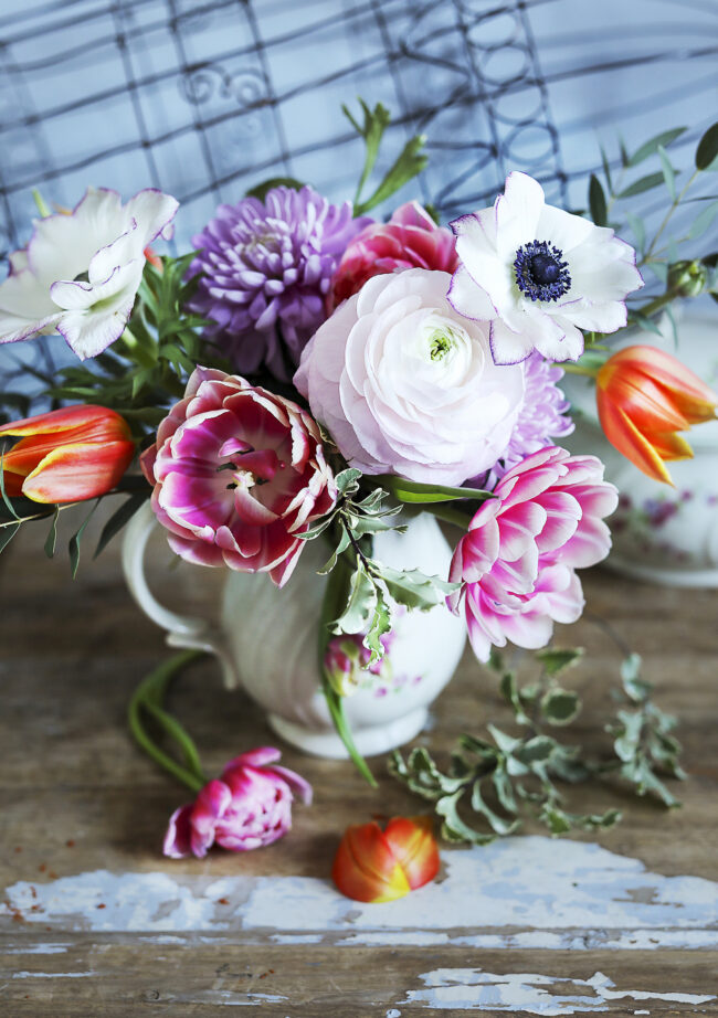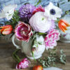 Kannessa värikäs kukkakimpun kuva