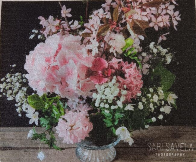 Sieniliina/tiskirätti sisältää 70% puuselluloosaa ja 30% puuvillaa. Sieniliina on valmistettu Länsi-Euroopassa ja painettu Suomessa. Koko 17×20 cm, paksuus märkänä n. 5 mm. Liina on biohajoava ja se on painettu myrkyttömillä vesipohjaisilla väreillä. Liinat ovat hyviä imukyvyltään ja kestävät käytössä. Konepestävä 60 asteessa.