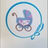 PostikortitKaksiosainen kortti, jonka kannessa vauva-aiheinen käsinkirjailtu kuva.